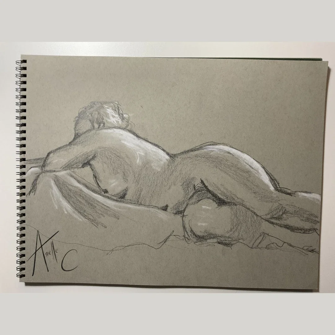 Training of sketching the human body and facial features with a live model. A great way to practice applying anatomy rules real fast and catching the essence of a pose instead of all the details. The best learning experience for choosing what’s important for our personal artistic lense.