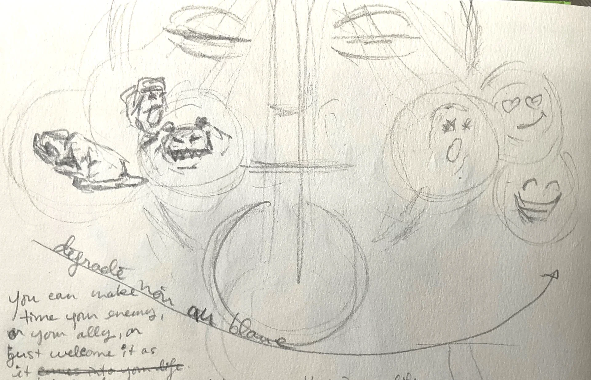 The very first steps and exploration to make one idea come to life. Rough sketches and tests that may or may not become a final piece.